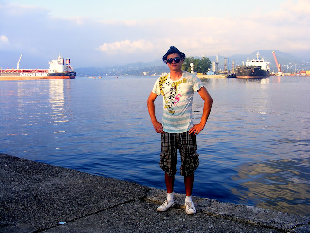 Maha panid nad mind Batumi kesklinnas. Helesinise veega basseinid, väga hea muusikaga välipubid, pargid pügatud puude ja purskaevudega, ilusad inimesed, päikeseloojang ja muidugi meri. Ühes pargis küsisin ma teed noortelt, kes otsustasid mind viia bussijaama. Kõndisime umbes 15 minutit, mis oli päris lõbus. Enne bussi peale minekut adsid nad veel oma skaibi kasutajanimed. Buss sõitis otse piiri äärde, teel sinna oli ühes kohas suur lehmakari tee peal, mille vahel autot laveerisid. Enne piiriületust läksin ma veel ujuma Musta merre :P. Vesi oli mega soe ja ma oleks võinud sinna lainete sisse jäädagi.